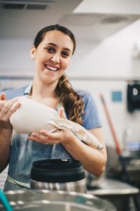 “The biggest challenge is keeping up with our growth, which is a good thing,” she said. “We built that downstairs [kitchen] thinking it would last us 5 to 7 years and we could grow our family here, and it’s 3 years in and we’re exploding out of it. I thought I’d bring in one employee and that’s all we’d ever need, and we’d have two people down there. Now we’re talking about balancing four to five people in this kitchen, and we’re building a walk-in refrigerator freezer.”