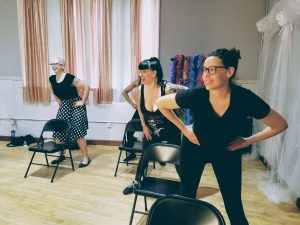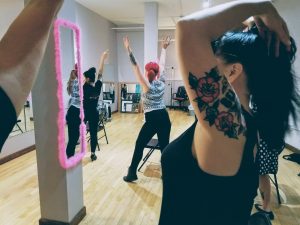 It’s safe to say — we had a fabulous time. A variety of workshops and classes are offered, from Burlesquercise, “The Art of the Tease,” Vintage Hair Styling Workshop, and Pinup Makeup Workshop. We decided to give Chair Dancing a try.